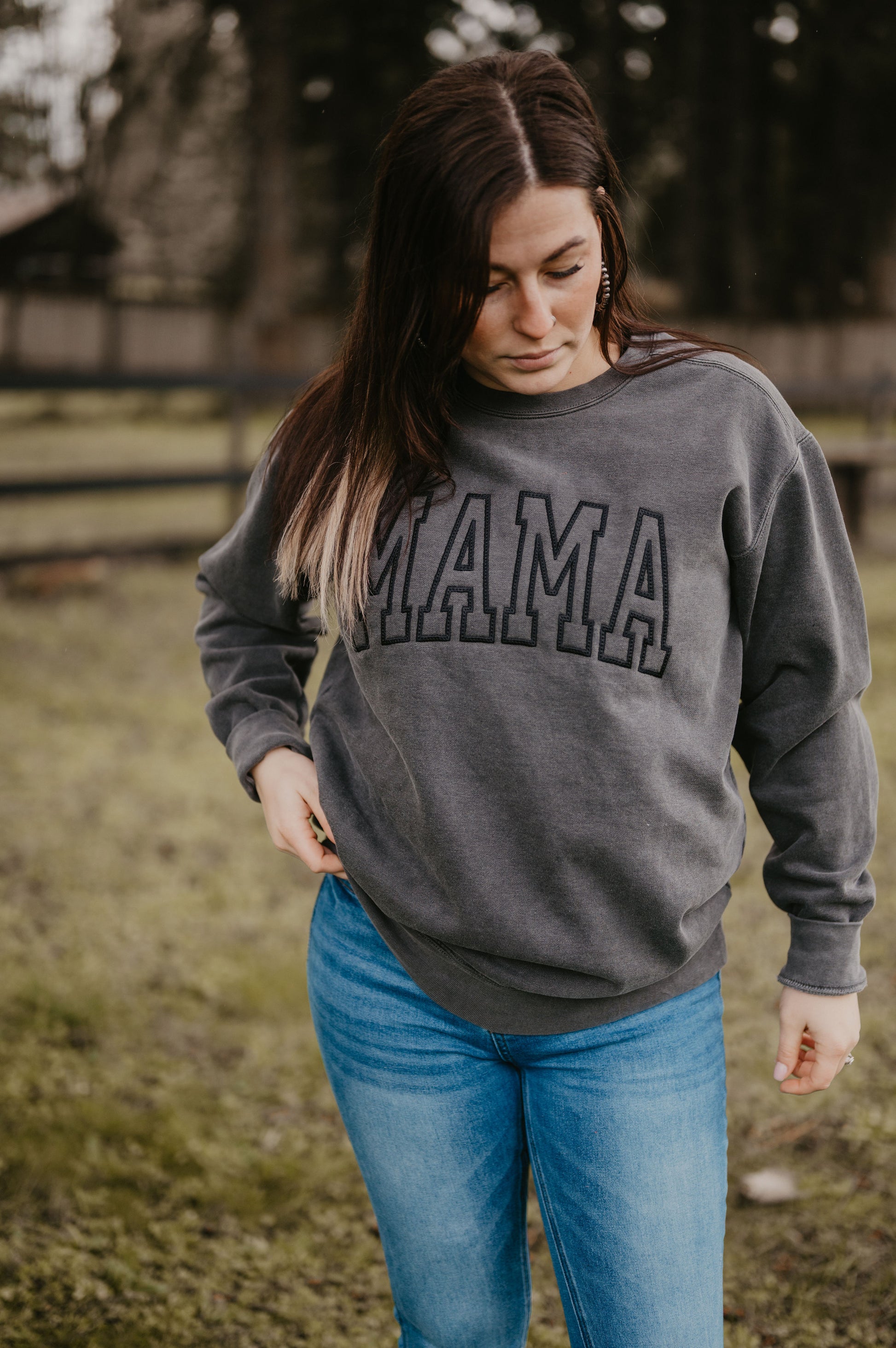 Cozy up in this comfort colors embroidered crew.